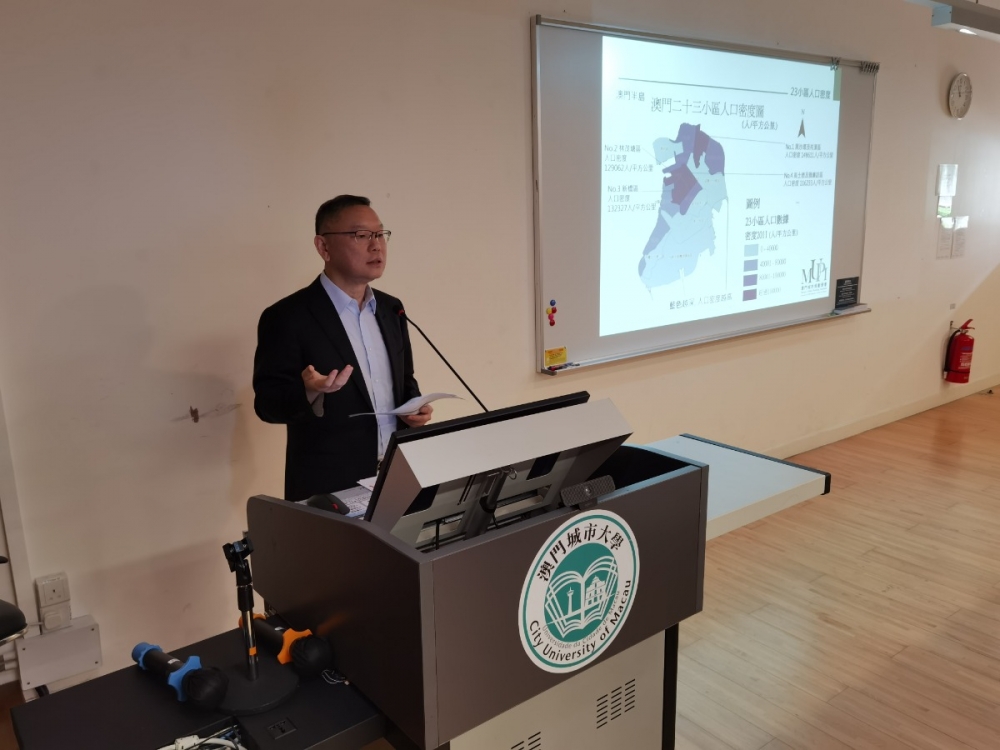 崔世平分享主題為“澳門人口分佈演變”,研究引用本澳近年的人口統計資料,從人口密的數據得知,人口密度最高者仍屬澳門半島北端,但人口密度增幅最高區域則為半島南端及氹仔,即本澳人口南遷的趨勢尤為明顯,從城規角度出發,如何配合上述人口趨勢,規劃適切的社會設施,滿足居民需要,是本澳邁向緊湊城市及韌性城市必須面臨的重要課題。